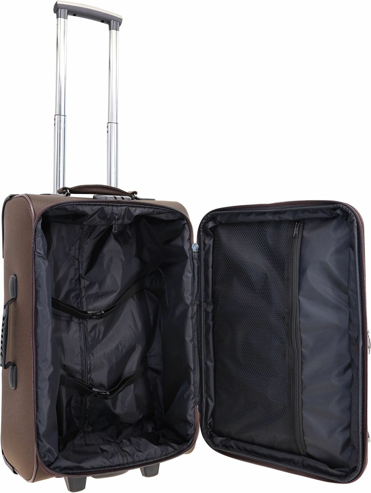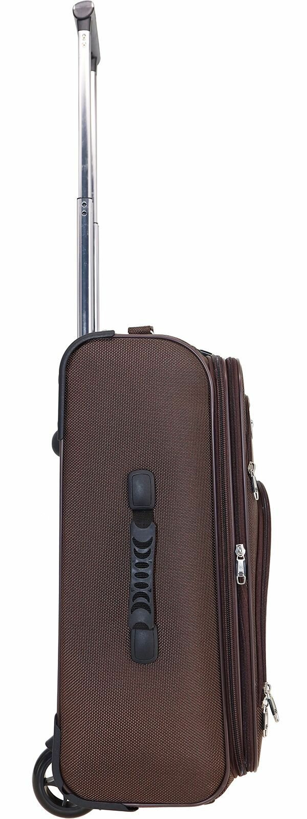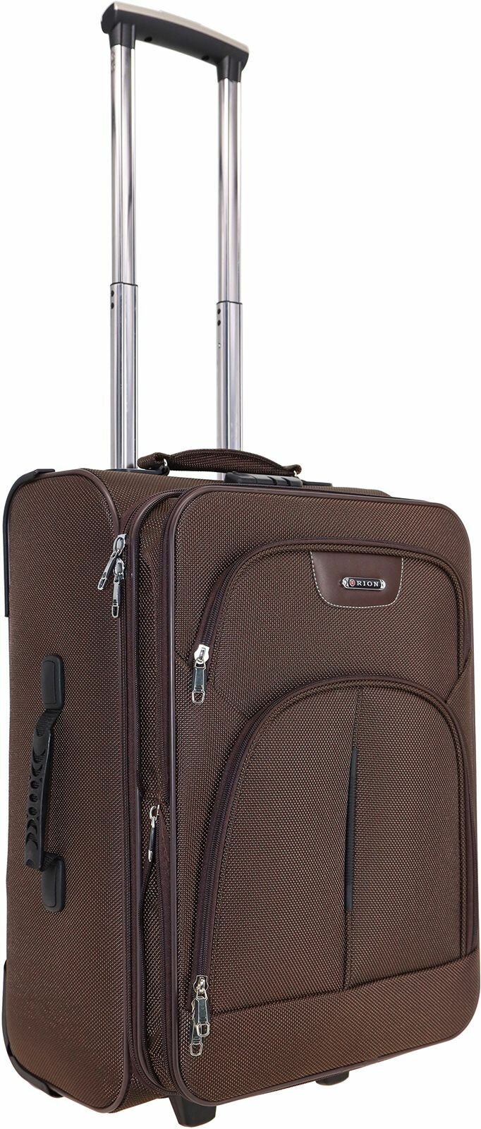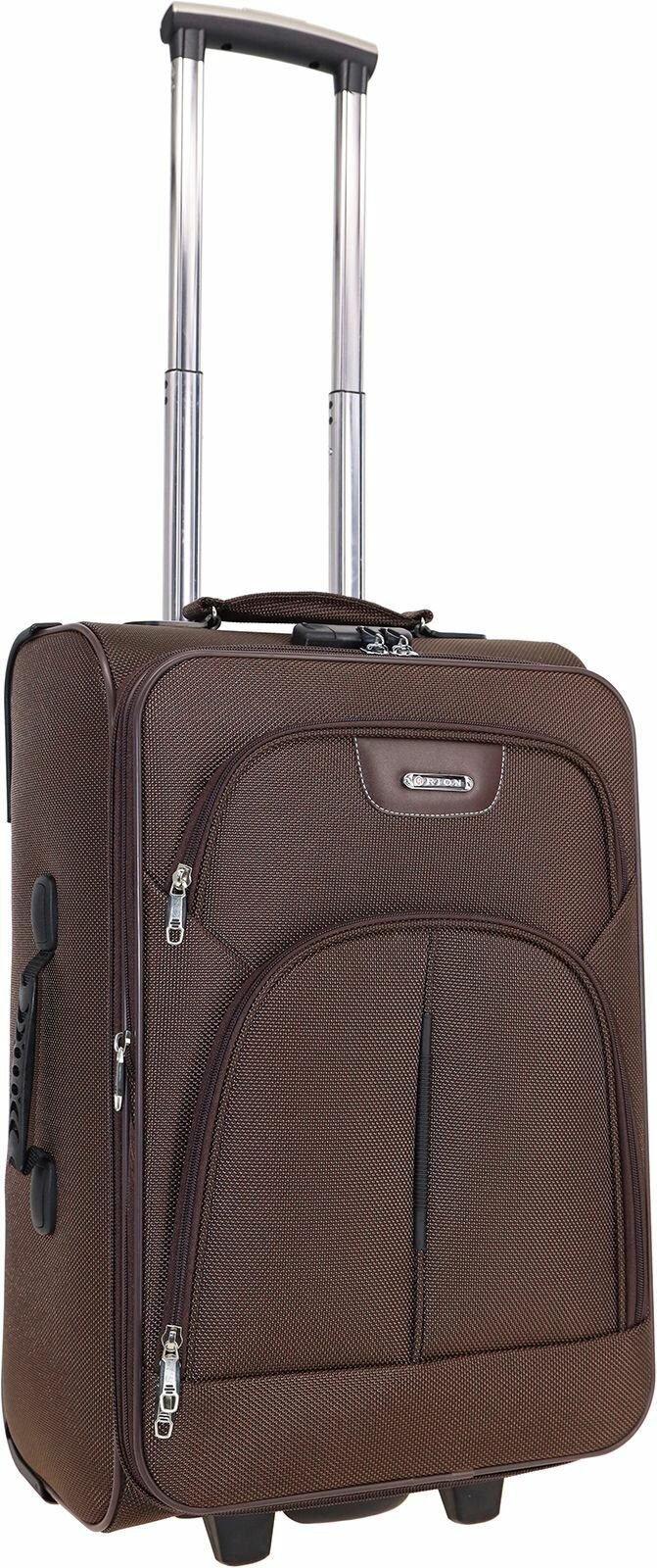 Купить Чемодан Рион+ (RION+) R411, Ткань, 56 см, 52+15 литра, 2 колеса, M (56-70 см), усиленный до 25кг, коричневый
