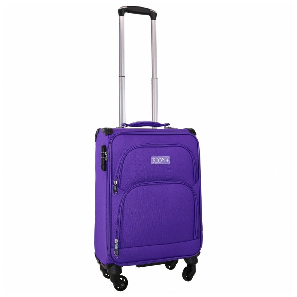 Чемодан Рион+ (RION+) R453, Ткань, 55 см, 38 литра, 4 колеса, S (до 55 см), ручная кладь, супер-легкий, 2,4кг, фиолетовый