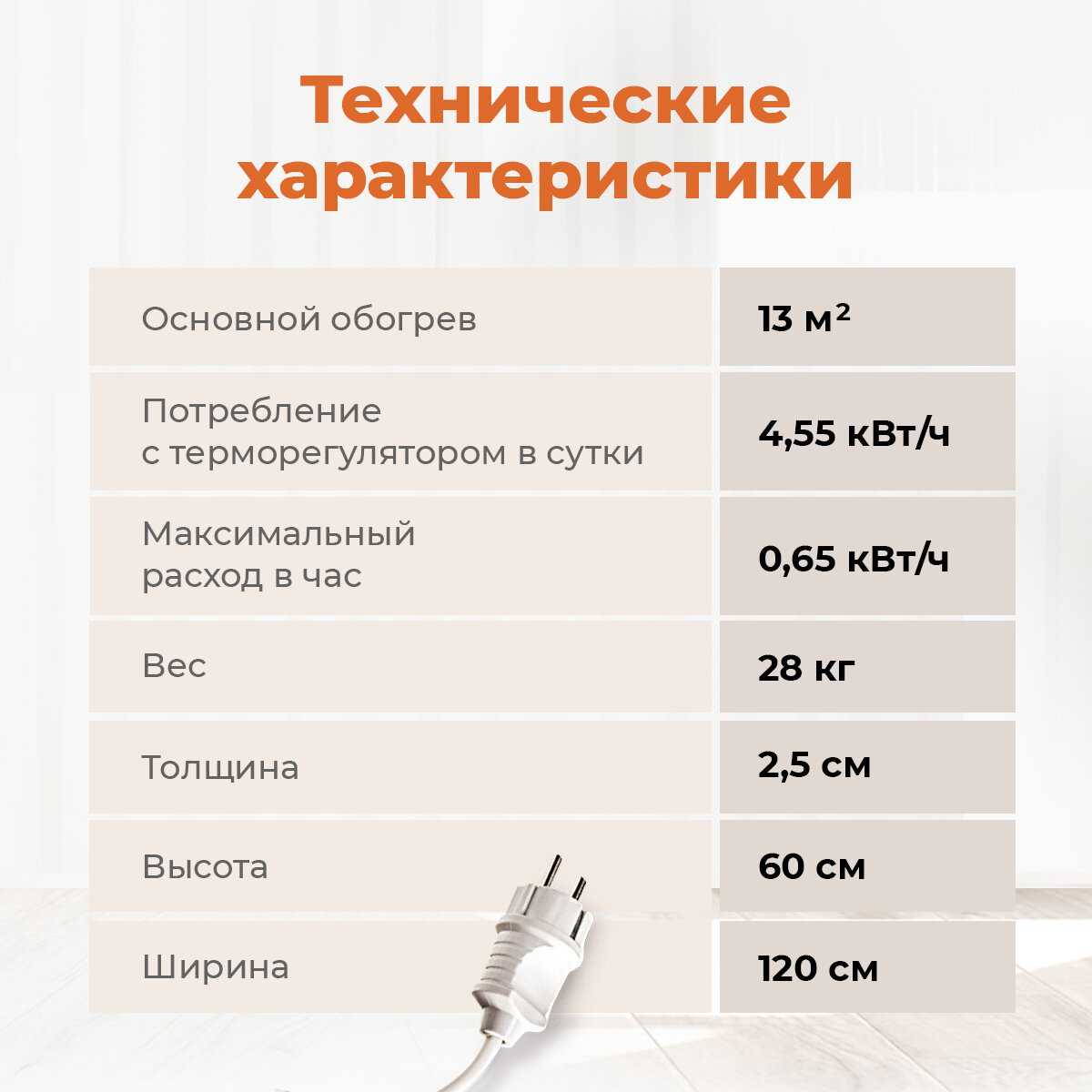 | Площадь обогрева | 13 кв.м |
