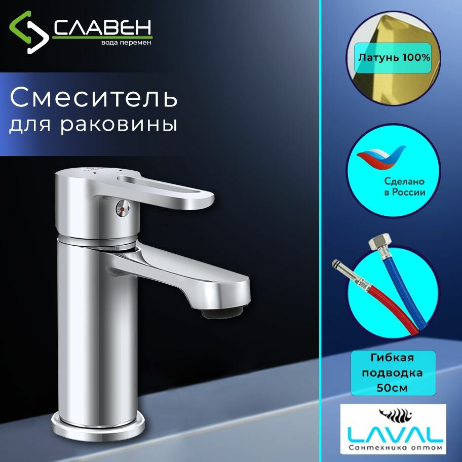 Смеситель для раковины, хром, гибкая подводка 50см (Славен СЛ-ОД-Т10)