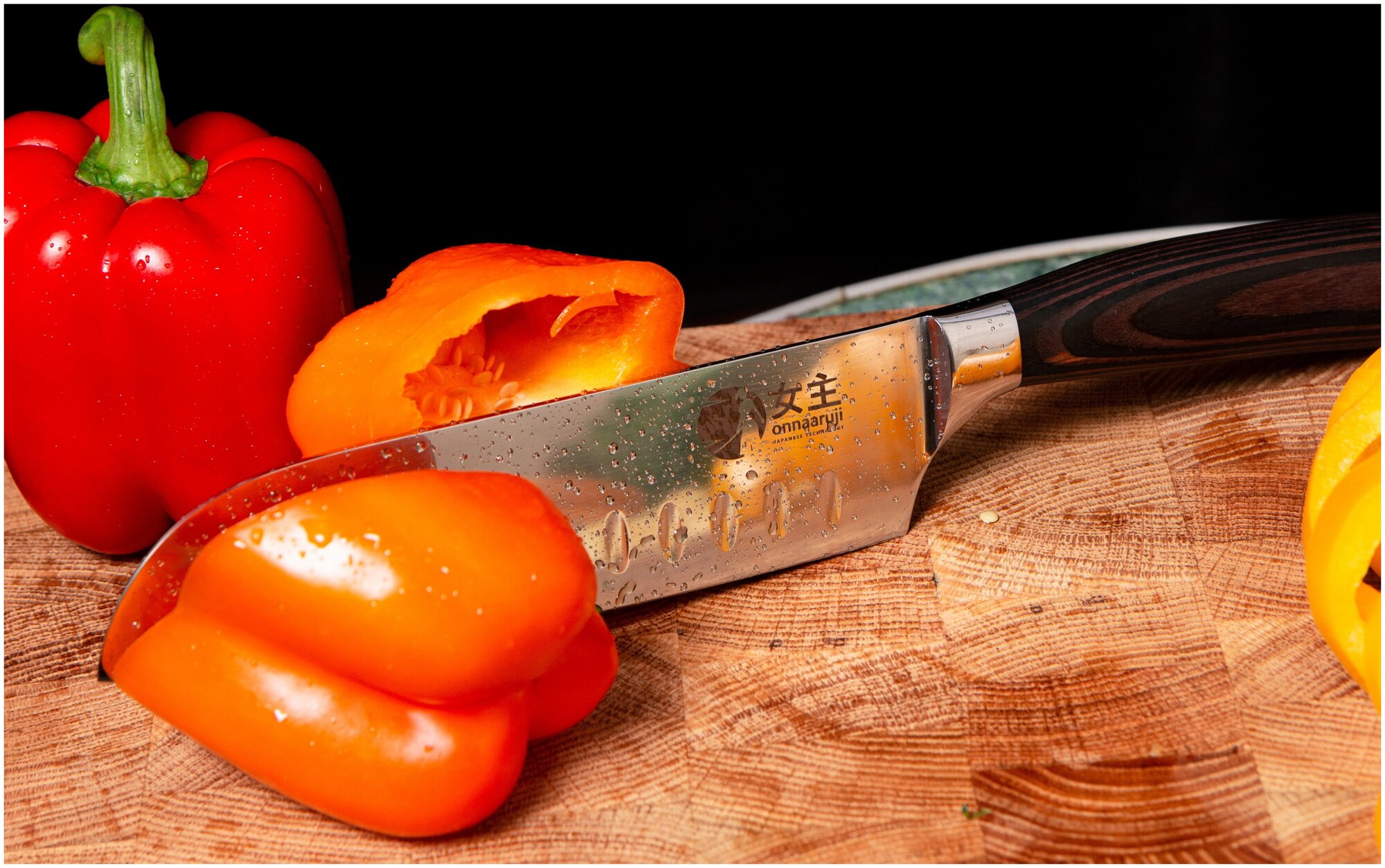 Все ножи Onnaaruji хорошо режут, острые, имеют удобные рукоятка. Ножом Сантоку работать одно удовольствие. Рекомендую, тем кто хочет облегчить работу на кухне.