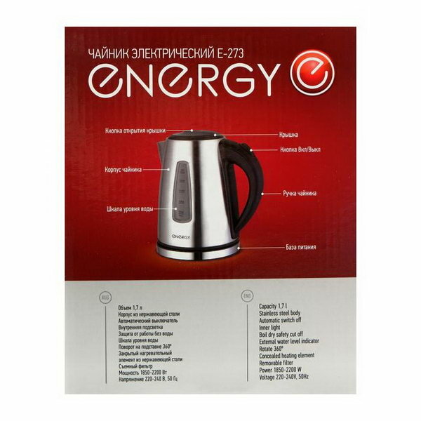 Ниже Вы можете прочитать отзывы на Energy E-273 чайник электрический дисковый стальной, 1,7 л, 2200Вт, ознакомится с подробными характеристиками, посмотреть интересные обзоры и фотографии на Energy E-273 чайник электрический дисковый стальной, 1,7 л, 2200Вт.