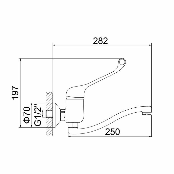 Смеситель кухня пристенный 25 см хирургическая ручка (40) Силумин Accoona A5941
