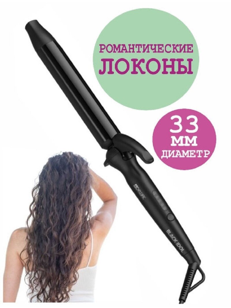 Плойка для волос DEWAL 03-1633T BLACK IDOL 33 мм, с терморегулятором