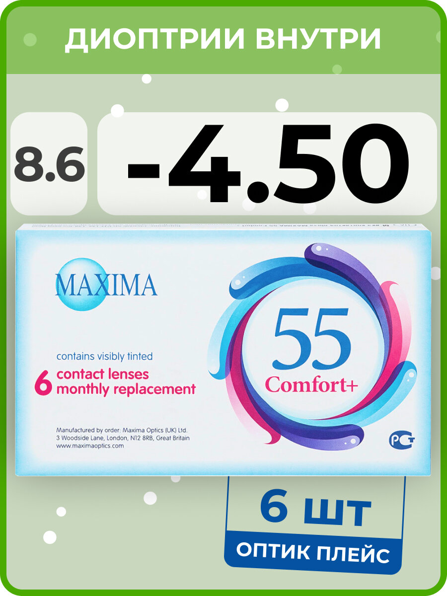 Maxima 55 Comfort Plus 6 линз В упаковке 6 штук Оптическая сила 4.5 Радиус кривизны 8.6