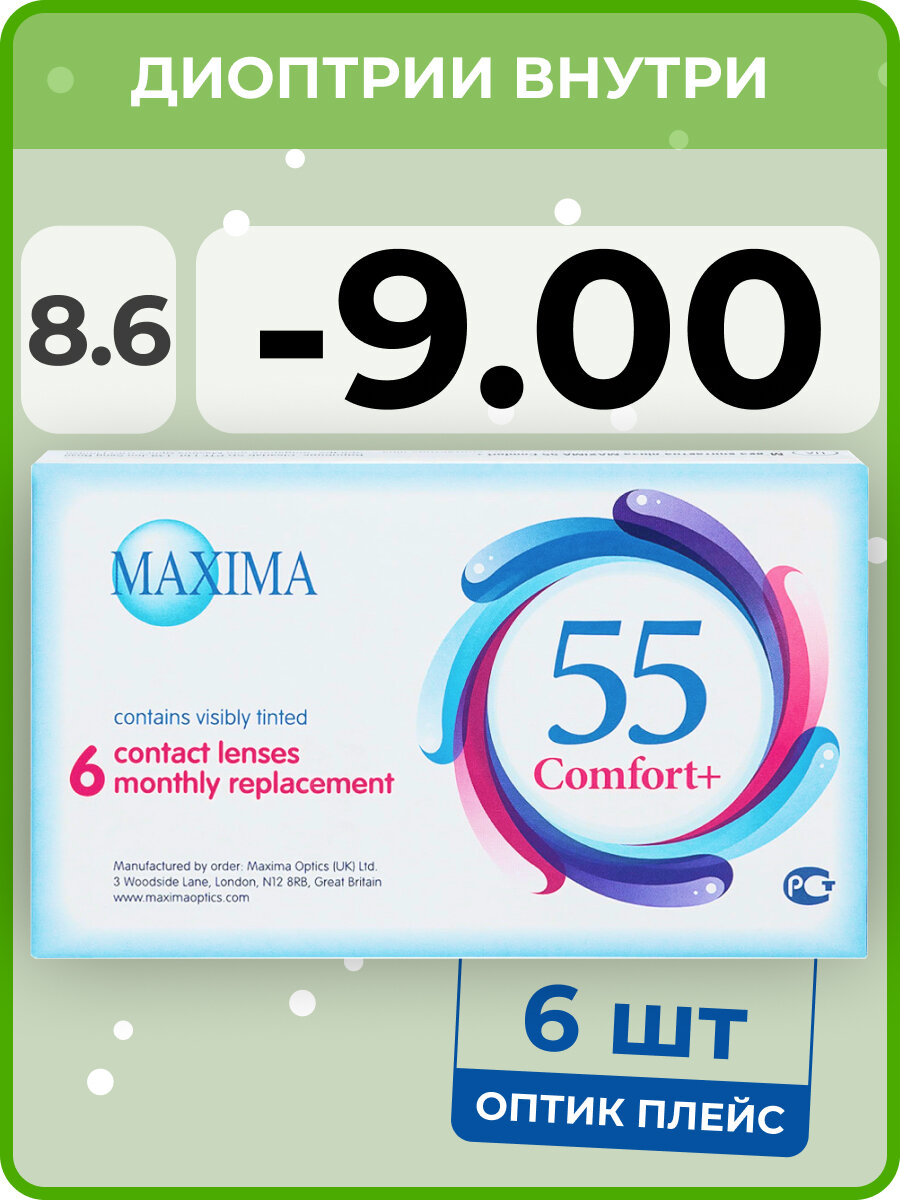 Maxima 55 Comfort Plus 6 линз В упаковке 6 штук Оптическая сила -9 Радиус кривизны 8.6