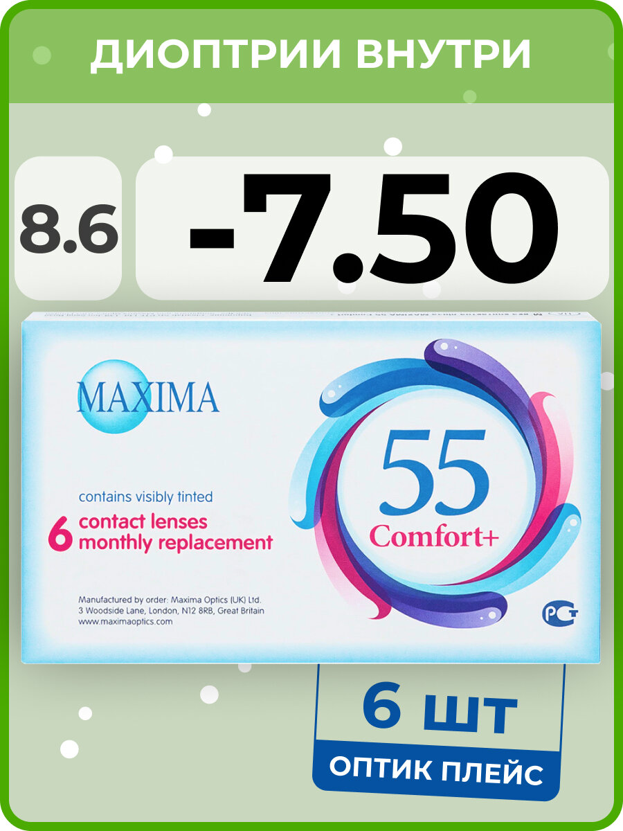 Купить Контактные линзы Maxima 55 Comfort Plus 1 месяц R. 8.6 SPH -7.50