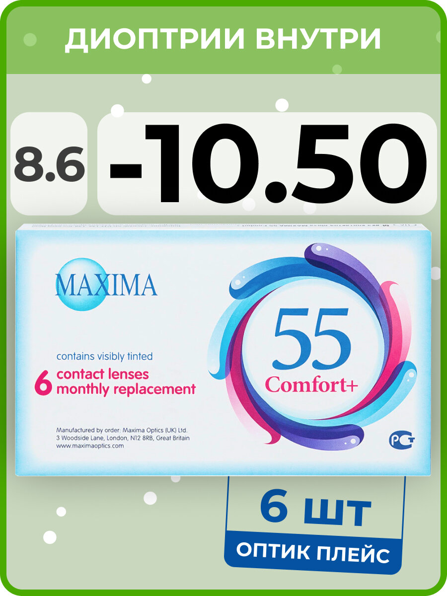 Maxima 55 Comfort Plus 6 линз В упаковке 6 штук Оптическая сила -10.5 Радиус кривизны 8.6