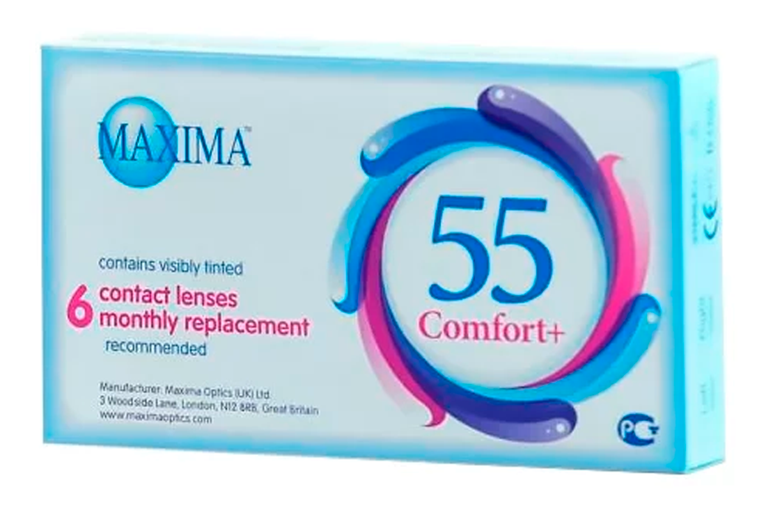 Контактные линзы Maxima 55 Comfort+, ежемесячные, -0,75 / 14,2 / 8,6 / 6 шт.