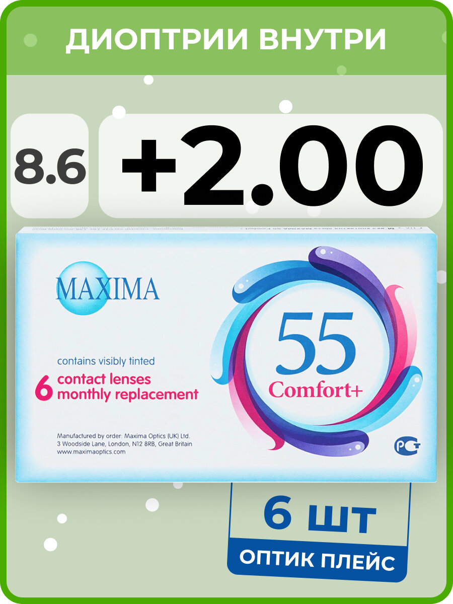 Купить Контактные линзы Maxima 55 Comfort Plus 1 месяц R. 8.6 SPH +2.00