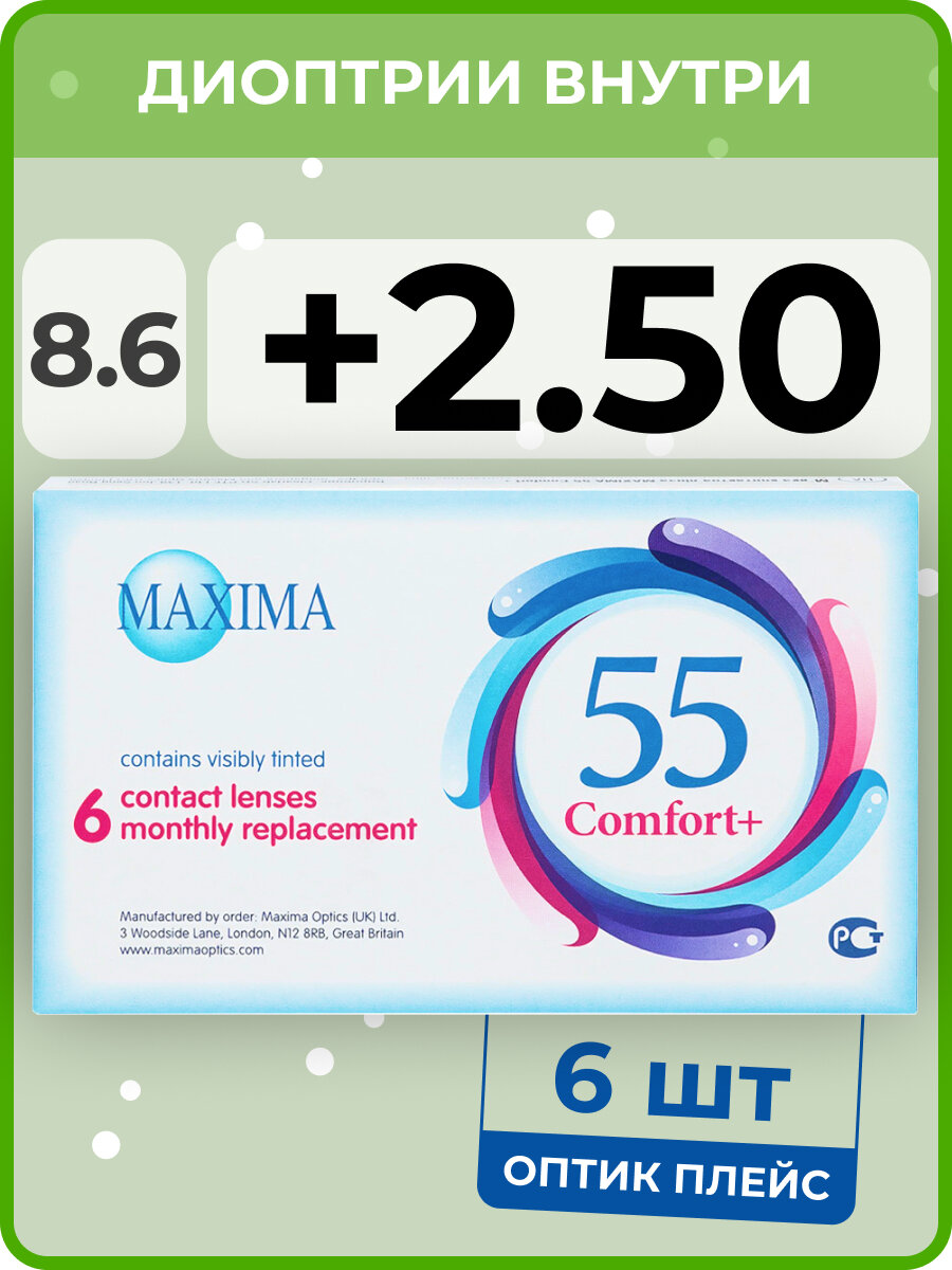 Купить Контактные линзы Maxima 55 Comfort Plus 1 месяц R. 8.6 SPH +2.50