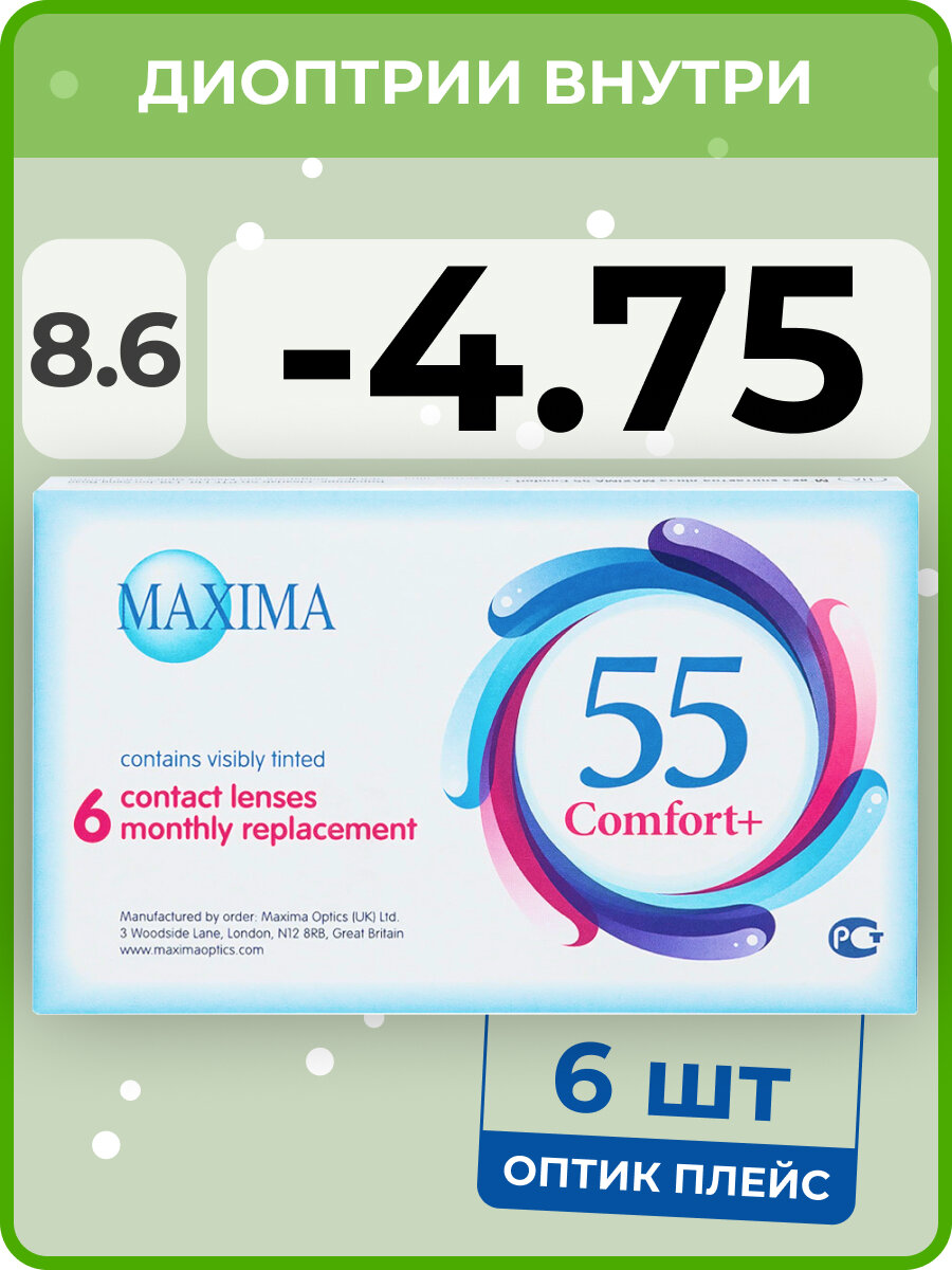 Контактные линзы Maxima 55 Comfort + 6 шт / -475/8.6/14.2 на месяц