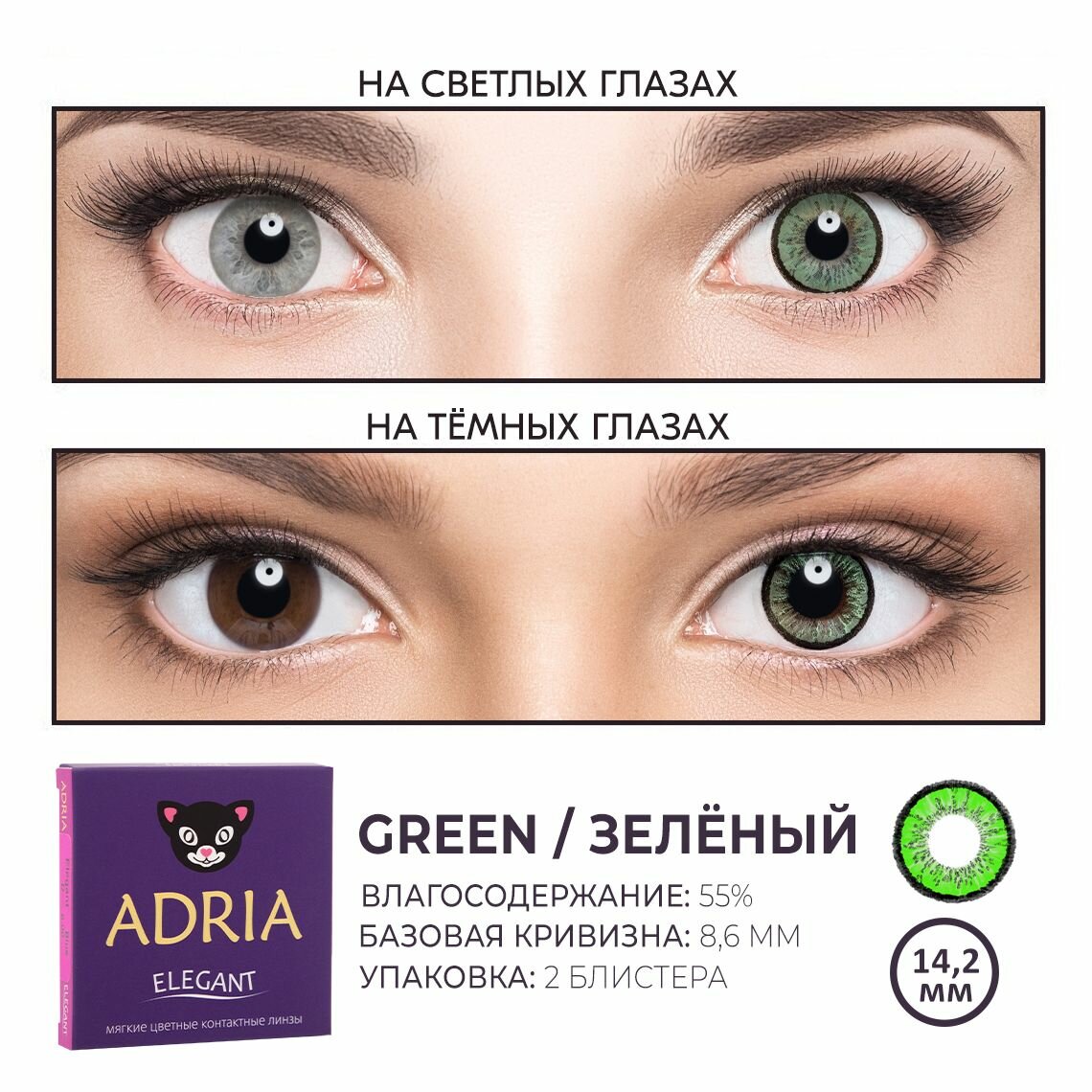 Контактные линзы ADRIA Elegant, 2 шт., R 8,6, D -6,00, green