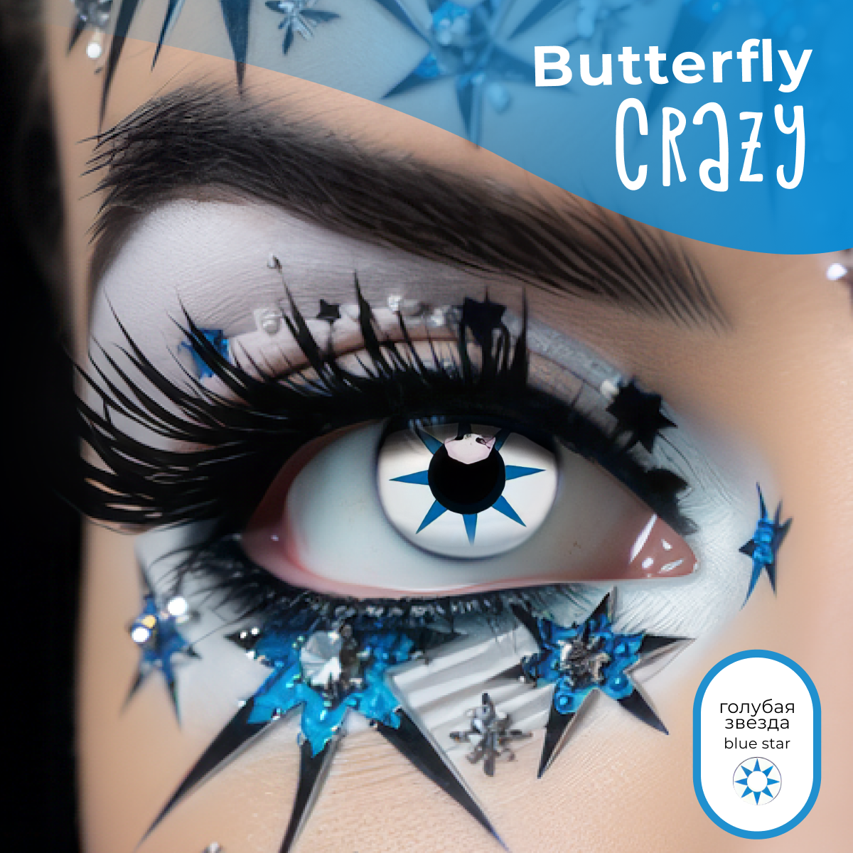 Купить Цветные контактные линзы Офтальмикс Butterfly Crazy 0.00 R 8.6 Голубая звезда