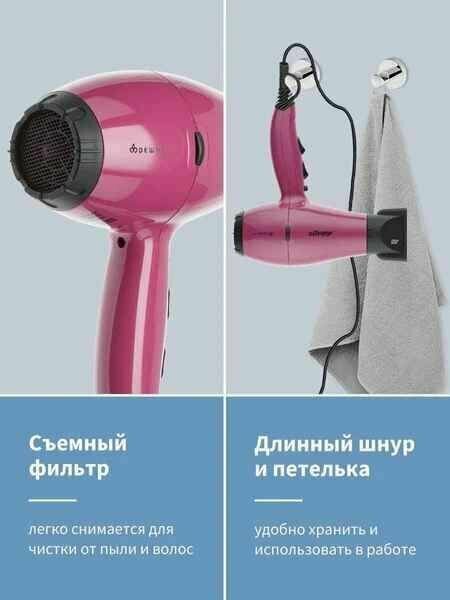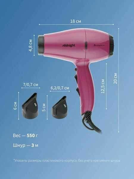 Фен Midnight ягодный, ионизация, 2 насадки, 2000 Вт