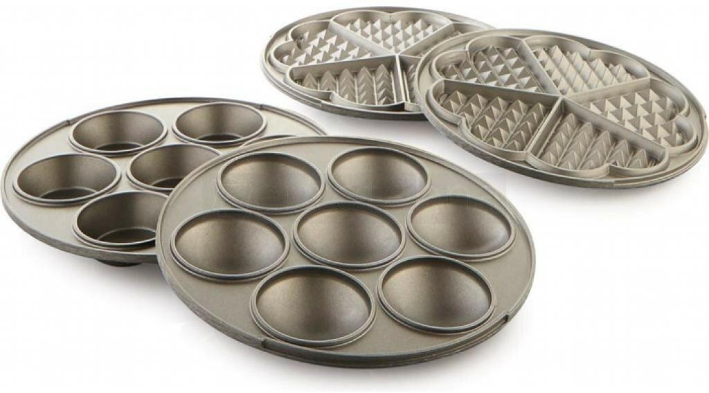 | Плюсы: | яркая вафельница со сменными носителями. |
