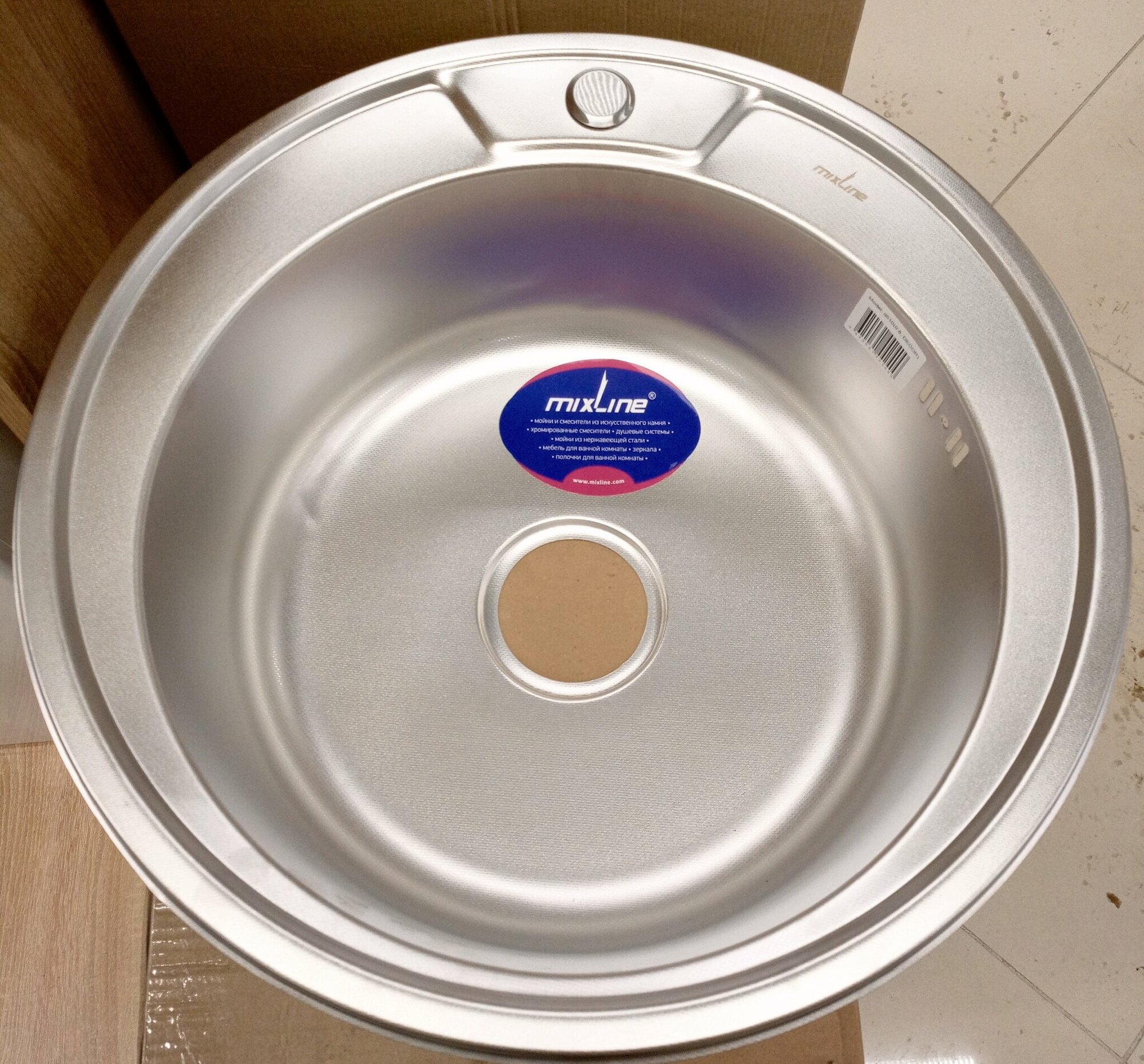 Врезная кухонная мойка Mixline из нержавеющей стали круглая d 49 см выпуск 3 1/2 глубина 18 см