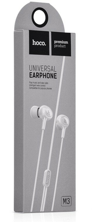 Наушники Hoco M3 Universal, Jack 3.5mm, 1.2 м, белый, контроллер с микрофоном