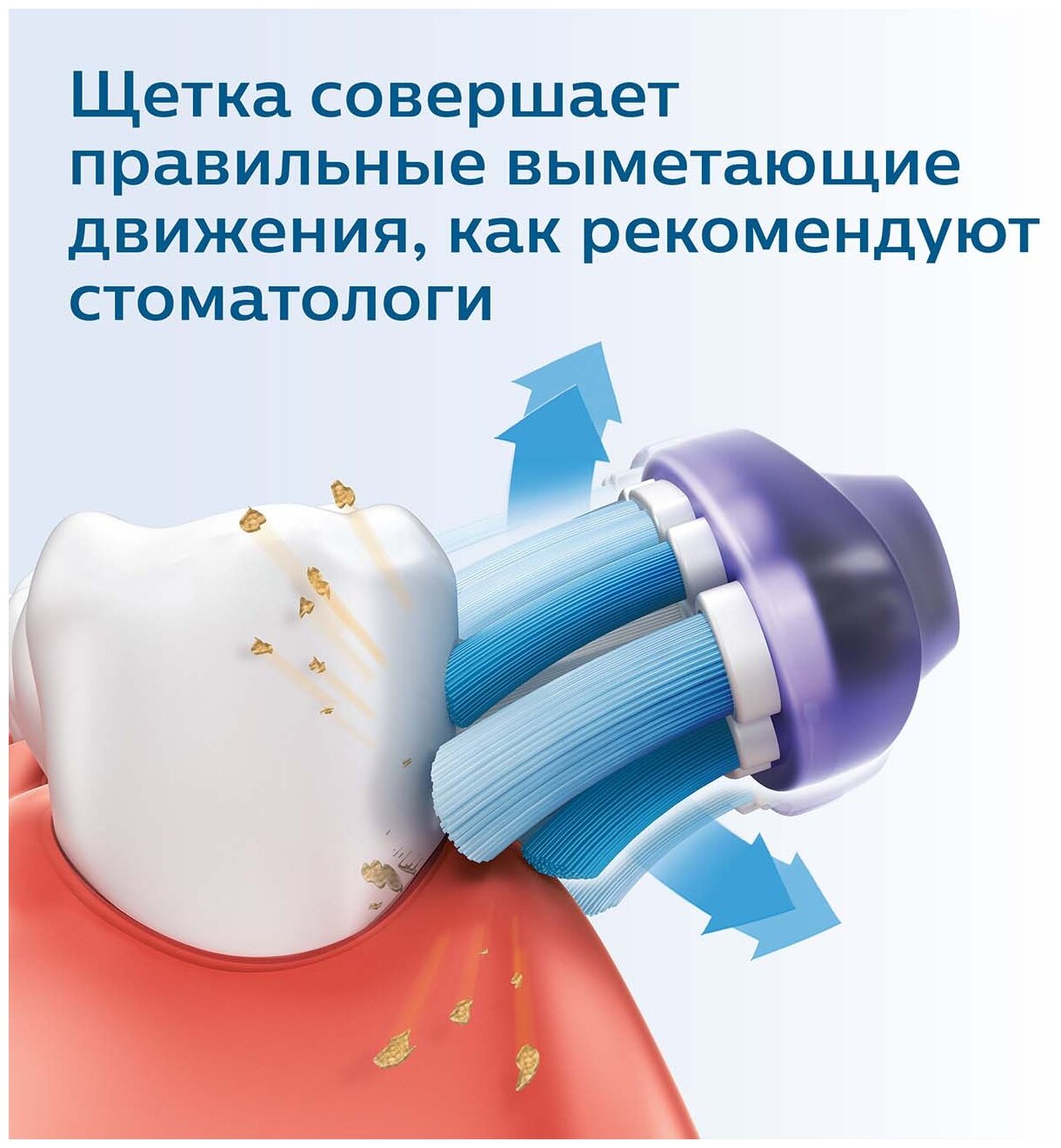 | Плюсы: | Долго держит заряд; хорошо очищает налет; наличие таймера; постепенное увеличение мощности в течение первых 14 процедур; 2 насадки. |