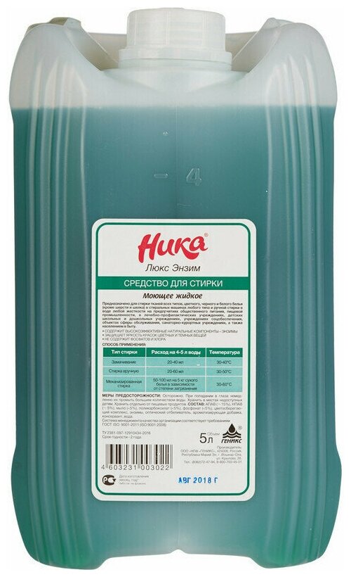 Купить Ника Люкс Энзим, средство для стирки, 5 л, канистра