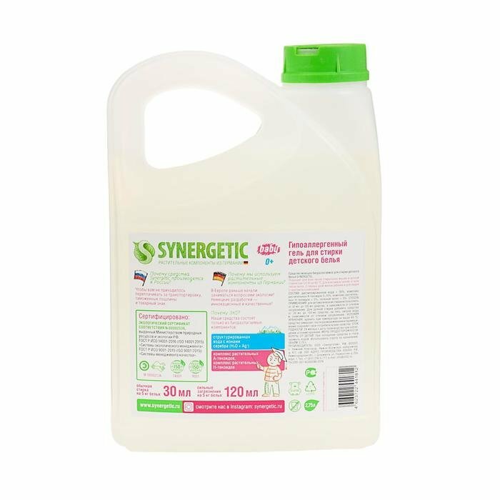 Средство моющее биоразлагаемое для стирки детского белья Synergetic, 2,75 л 3929059 .