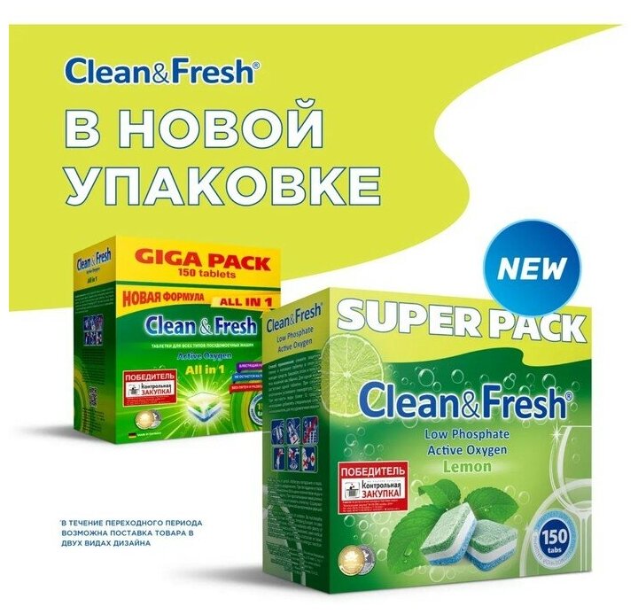 Clean & Fresh Таблетки для посудомоечной машины, 150 штук