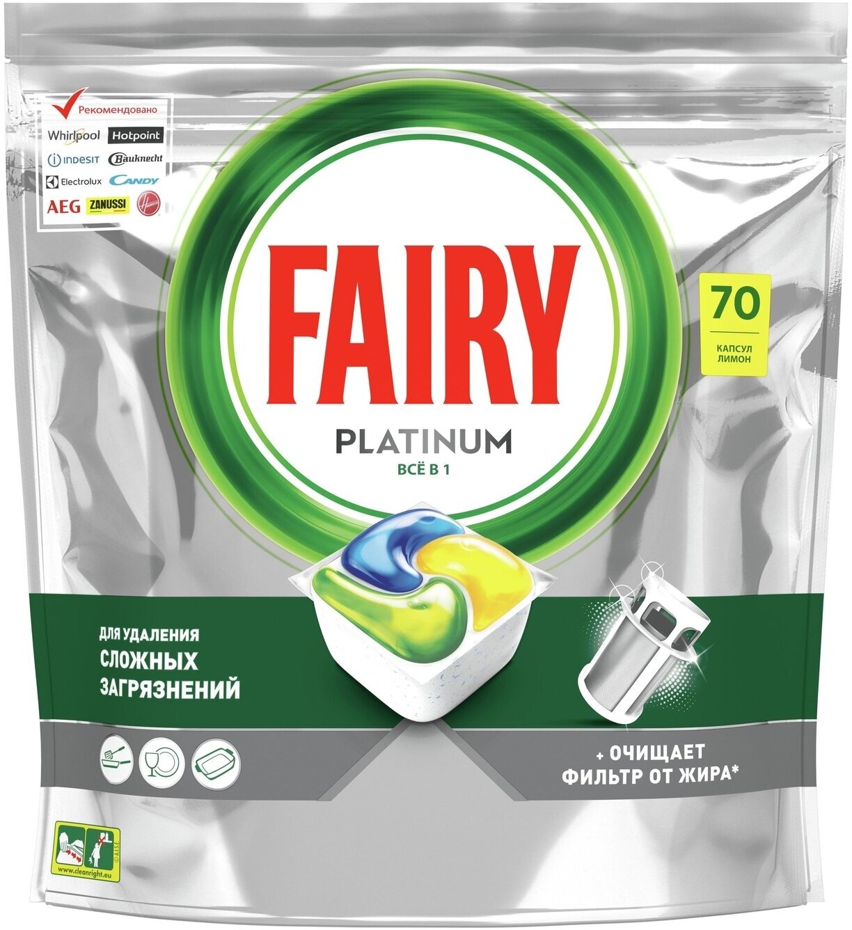 Fairy Капсулы для посудомоечной машины Fairy Platinum "Лимон", 70 шт.