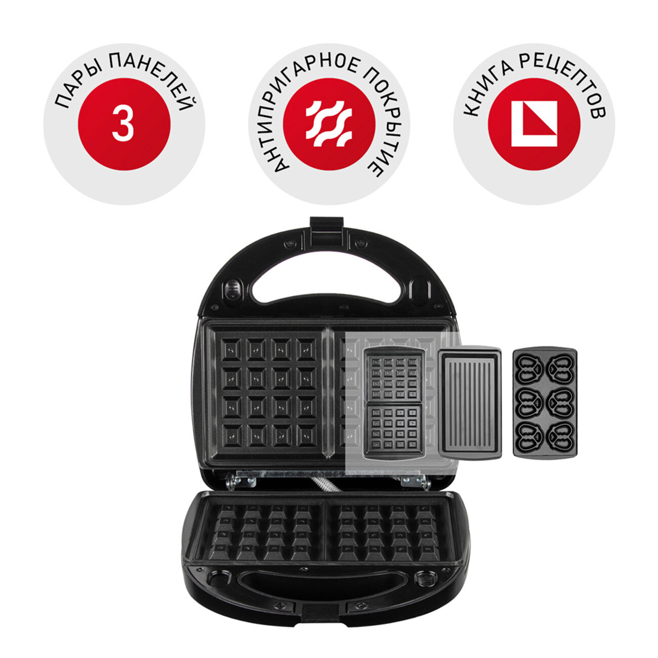 Пользуемся этим мультипекарем больше 2 лет. Купили ради венских вафель, но в комплекте шли ещё панели "гриль" и "кренделя". Заценили каждую по достоинству. В этом и есть жирный плюс данного устройства, можно дополнительно купить то, чем действительно будешь пользоваться. Кстати, они часто продаются со скидками на официальном сайте. Сами панели за это время не поцарапались и не сломались крепления. Мыть их легко и просто, т. к к ним ничего не прилипает и не пригорает. Бонусом в комплекте была небольшая книга рецептов. О своей покупке ничуть не пожалели, субботний завтрак всегда начинаем с венских творожные вафель!)))