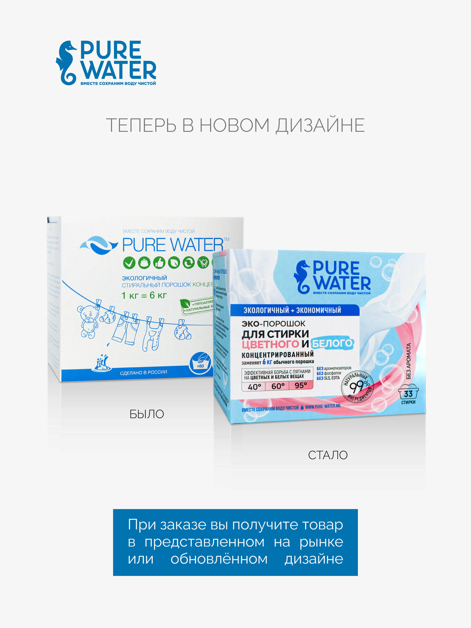 Стиральный порошок для белого и цветного Pure Water, концентрированный, 1кг, 2 шт.