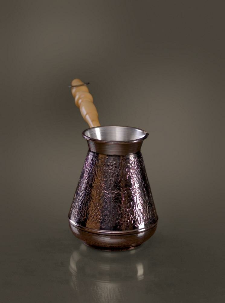 Турка медная "Виноград" 500мл, горл 9см, осн 9,6см, h11,8см, деревянная ручка