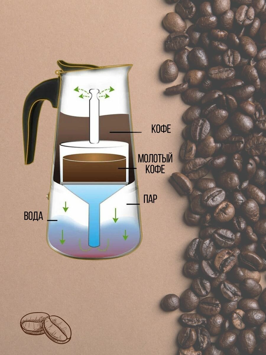 Работает на некоторых индукционных плитах Кофе получается хороший |