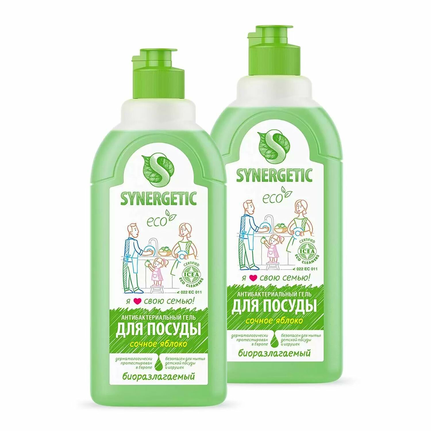 Купить Synergetic Антибактериальный гель для мытья посуды Сочное яблоко, 0.5 л, 2 уп.