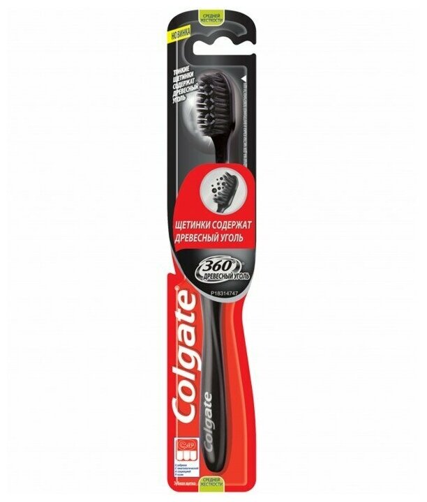Зубная щетка Colgate средней жесткости 360 Древесный уголь