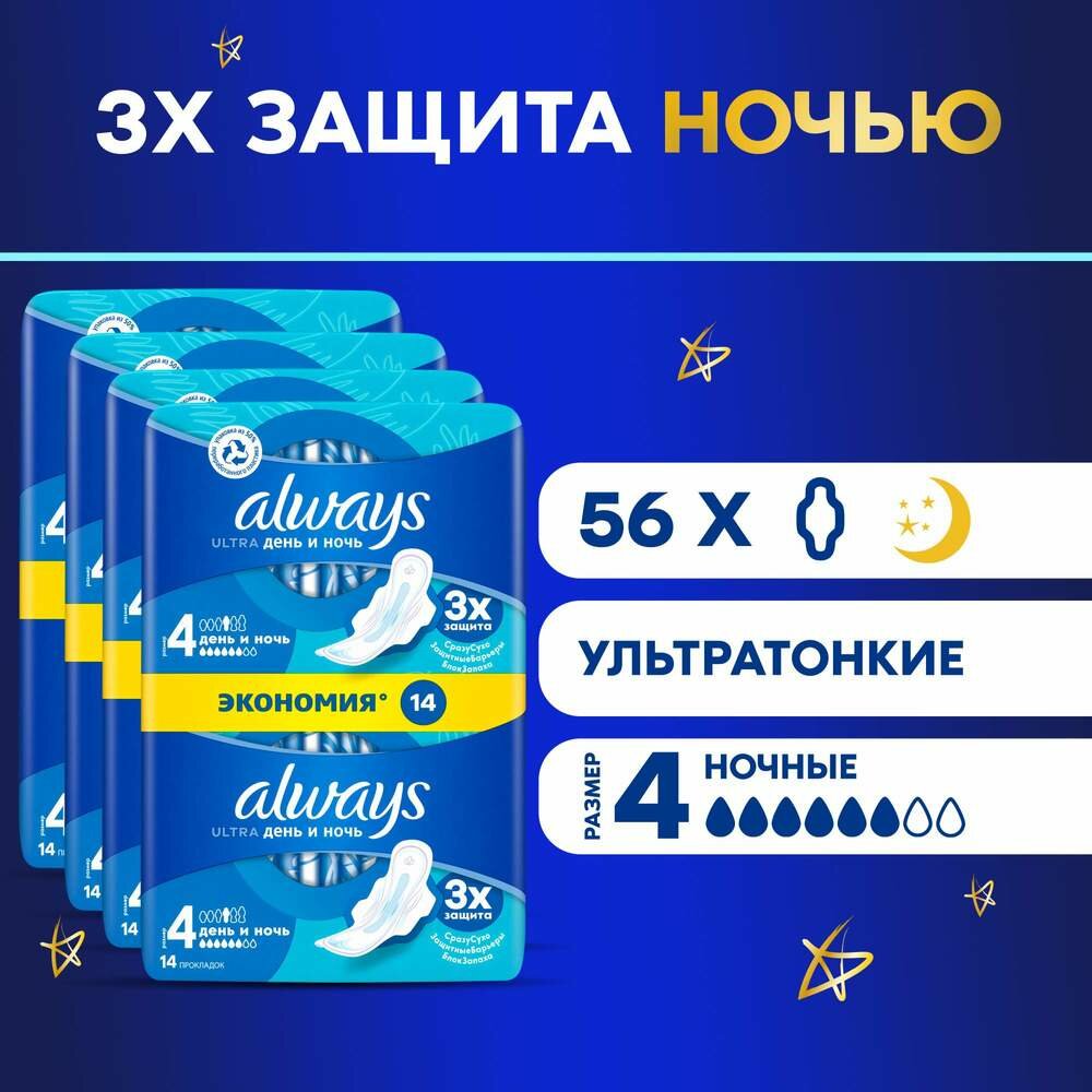 Женские гигиенические Прокладки с крылышками Always Ultra День и Ночь, размер 4, 14 шт.