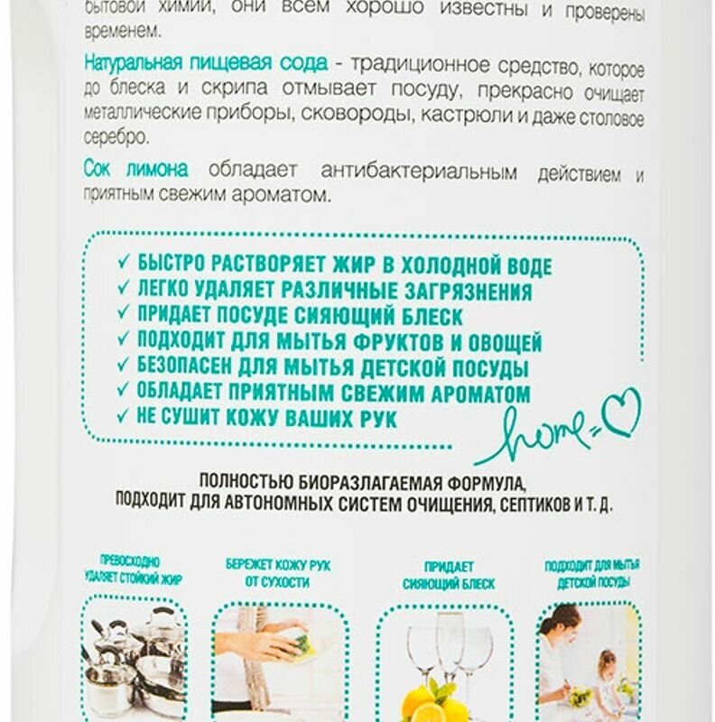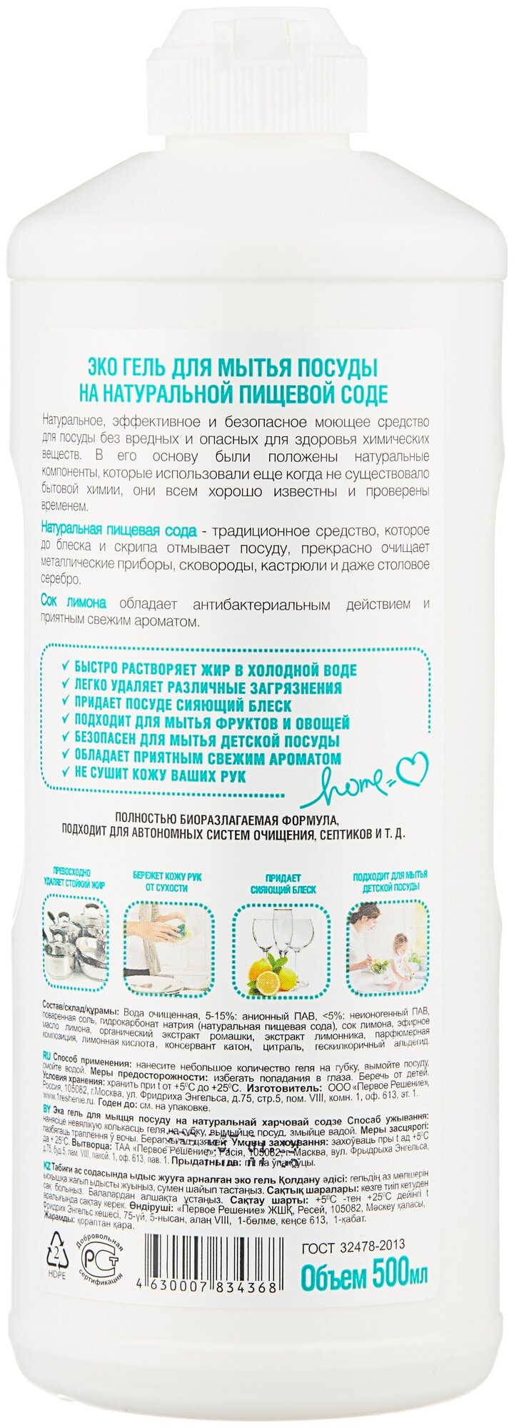 Эко гель для мытья посуды ZERO BIO с экстрактом соды и соком лимона 500 мл