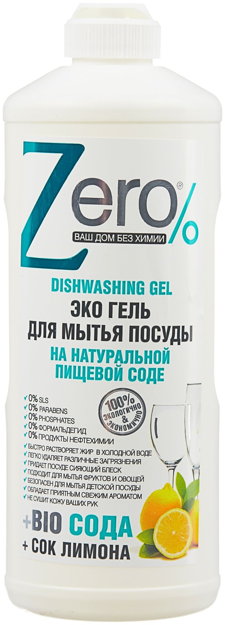 Купить ZERO Эко гель для мытья посуды на натуральной пищевой соде + сок лимона 500 мл