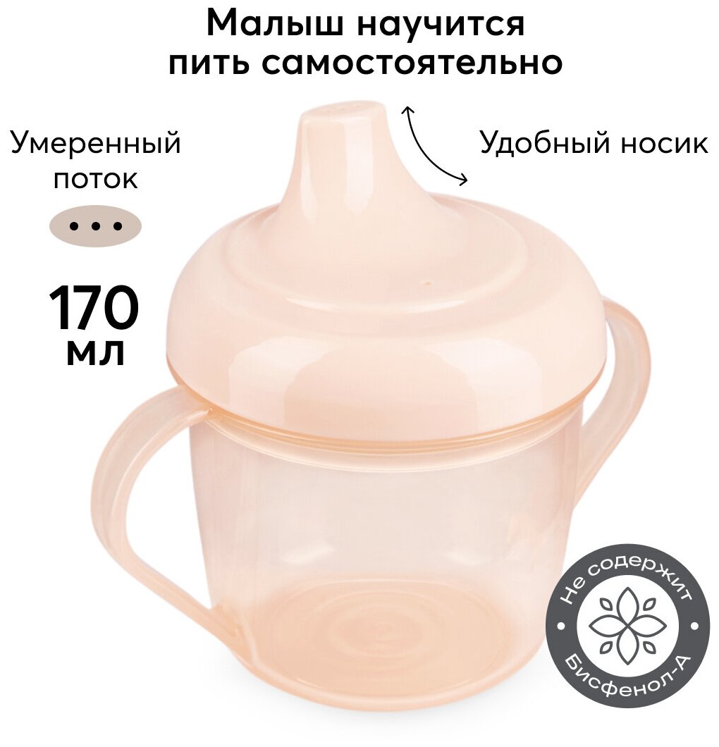 14001, Поильник детский с ручками Happy Baby, кружка поильник, 170 мл, бежевый