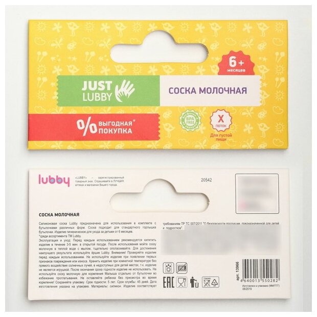 Соска силиконовая на бутылочку, L "Just LUBBY", от 6 мес., быстрый поток интересное: