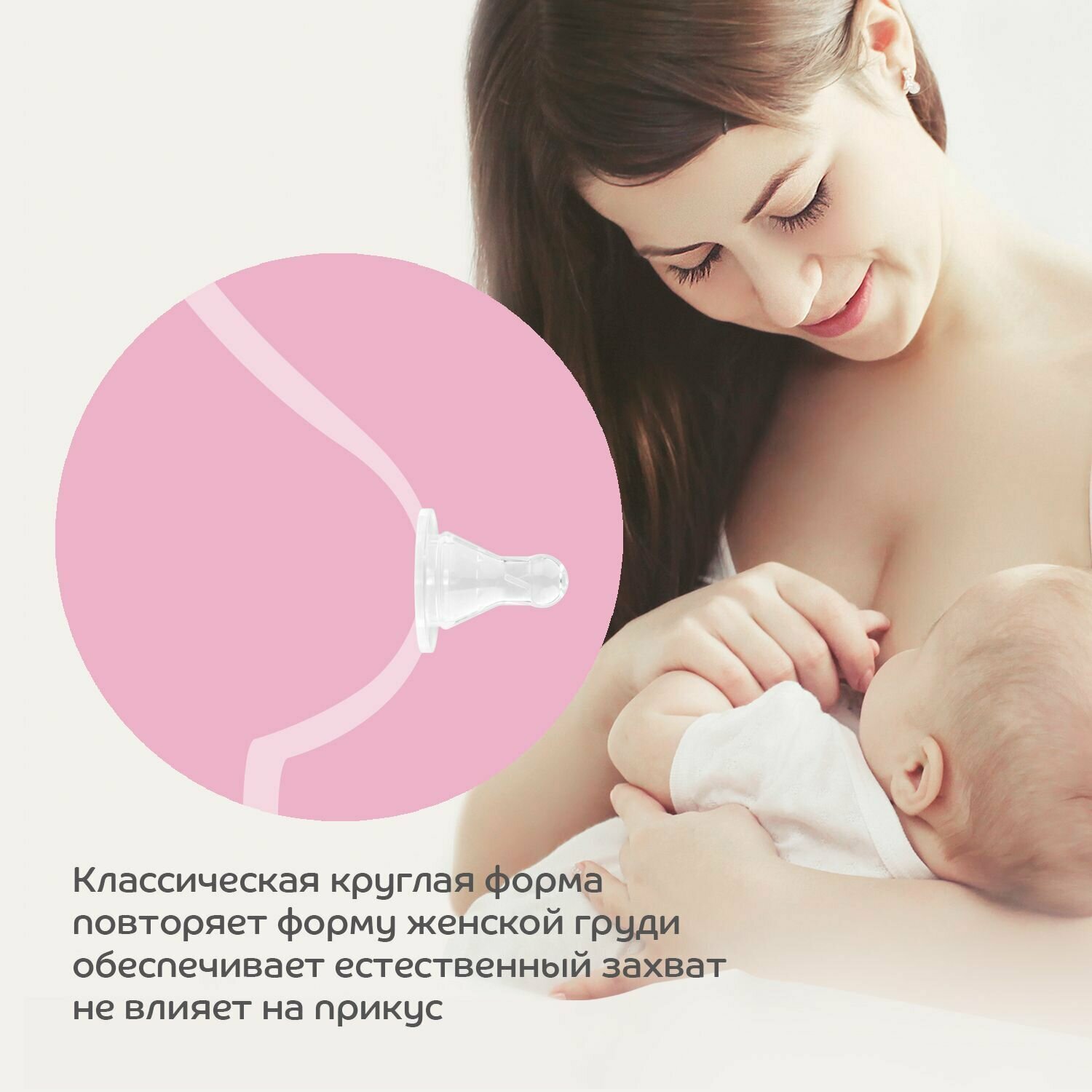 Антиколиковая соска силиконовая МирДетства для бутылочки с широким горлом, точечное отверстие и быстрый поток 6+, 1 шт.