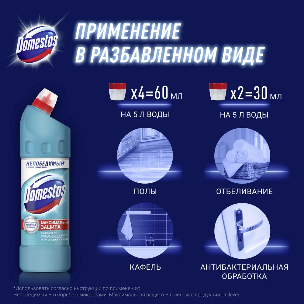 СохранитьЧистящее средство 1 л, DOMESTOS (Доместос) "Свежесть Атлантики", с отбеливающим эффектом интересное: