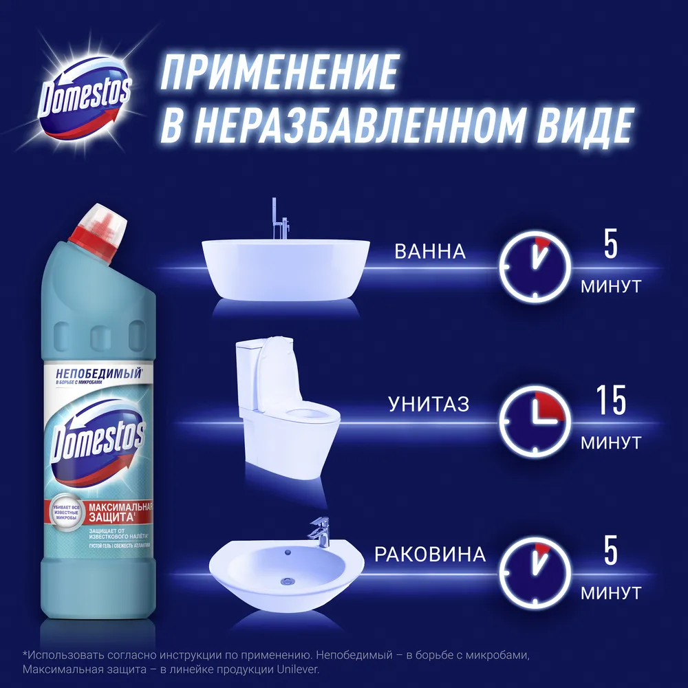 Чистящее средство универсальное Domestos "Свежесть Атлантики", гель, 500мл (арт. 249210)