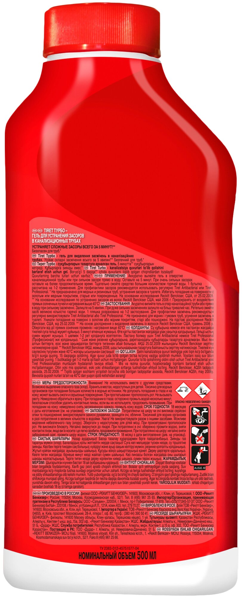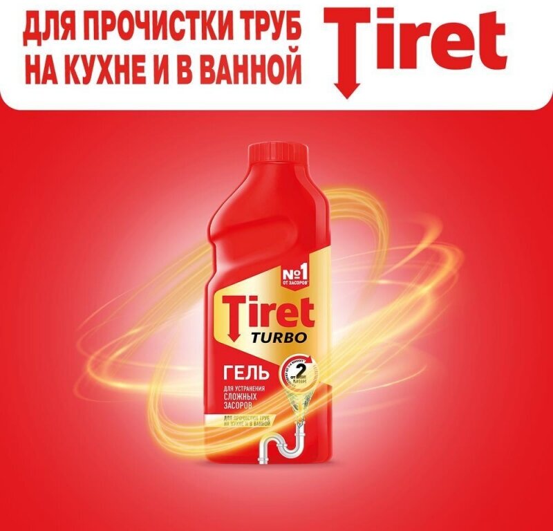 TIRET TURBO Гель для удаления засоров в канализационных трубах 500 мл. х 2 шт.
