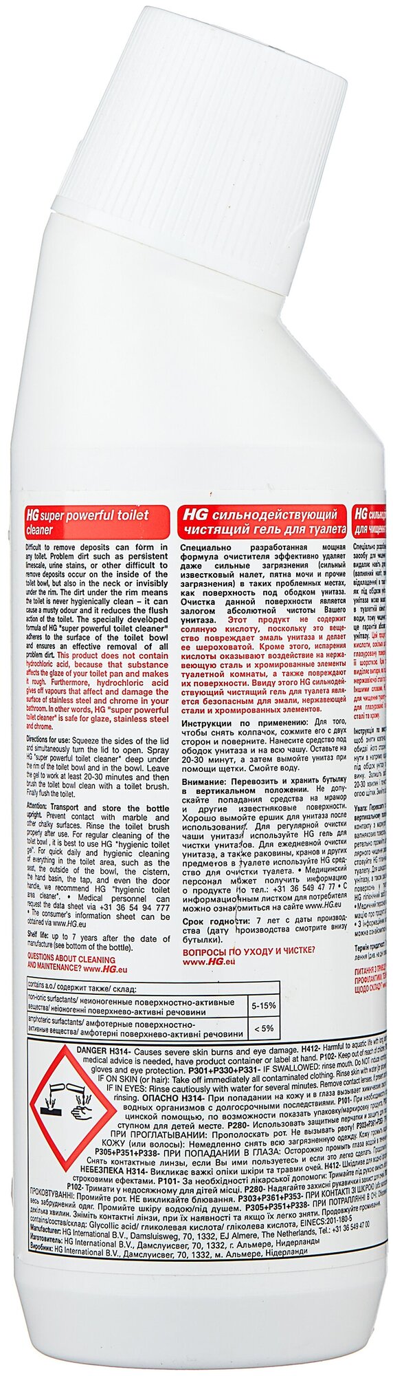 HG Сильнодействующий чистящий гель для туалета, 500 мл