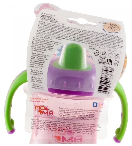 СохранитьПома Поильник - непроливайка 260 мл. с ручками и крышкой. 1 шт. 6+ (фиолетовый) интересное: