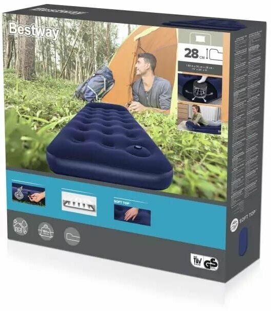 Матрас надувной BestWay 76х185х28см с подголовником, встр.ножной насос, до 150кг 67223 BW