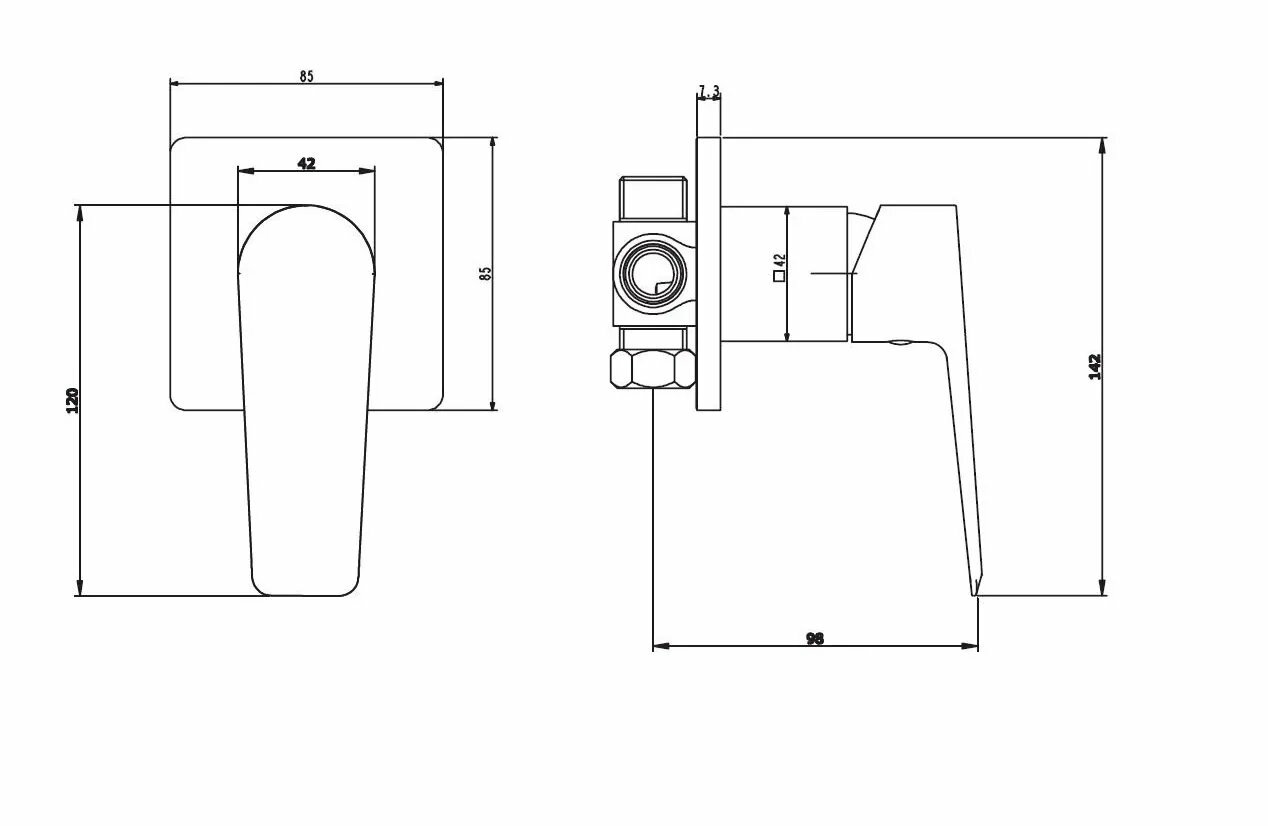 Смеситель для душа ESKO New York NY 83 встраиваемый, однозахватный, с внутренней частью, цвет: хр