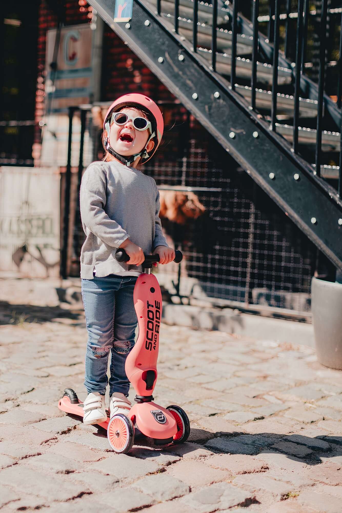 Самокат детский трехколесный COMIRON Yeenot "Зверята", регулируемая складная ручка, светящиеся колеса 110 и 75 мм, нагрузка до 40 кг, розовый / 1 шт.