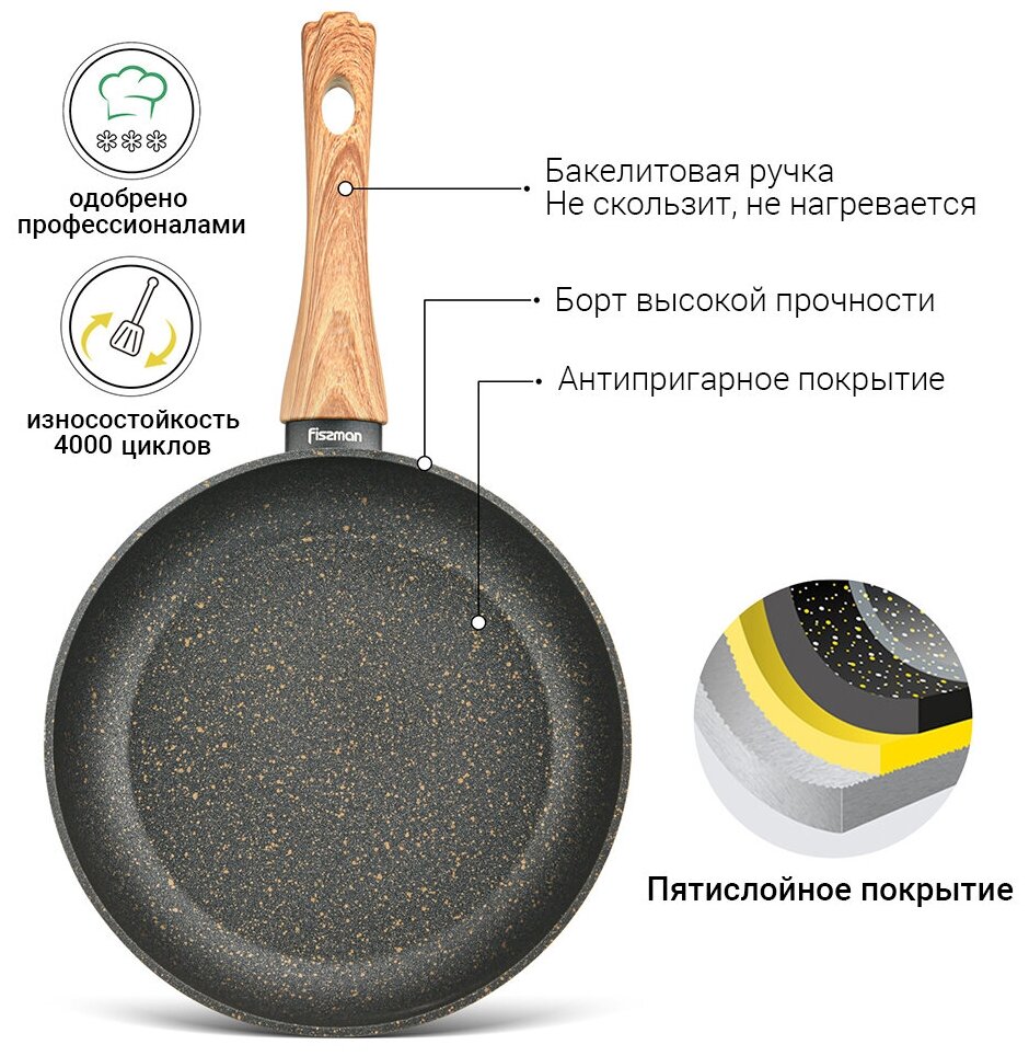 Сковорода Fissman BLACK COSMIC для жарки 28x5,4 см (алюминий) (4343) интересное: