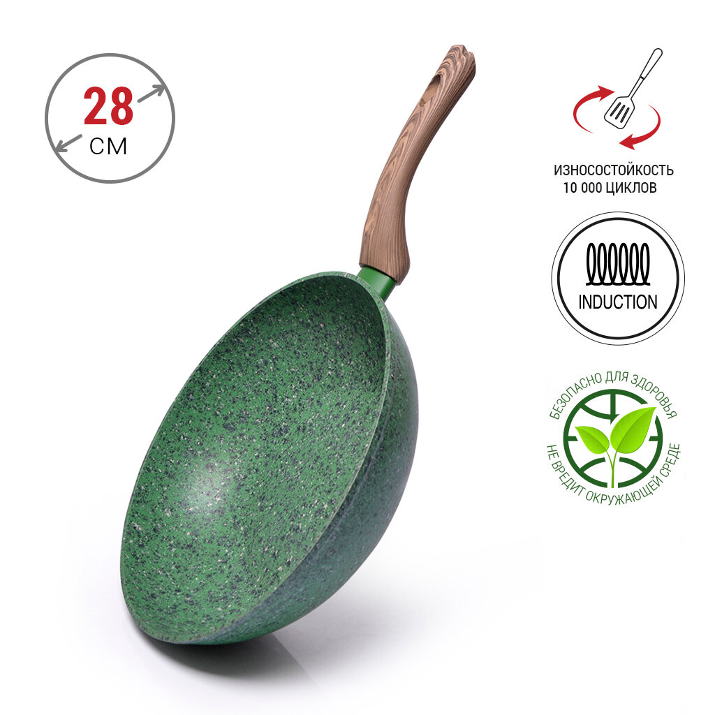 Сковорода-вок с антипригарным покрытием Fissman Malachite, 28 см, подходит для индукционных плит