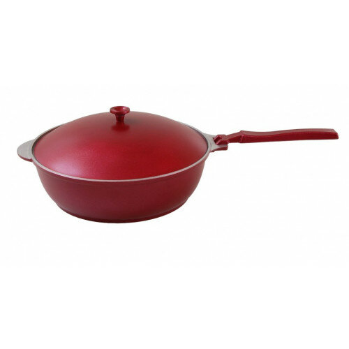 Купить Сковорода-сотейник 26см литой алюминий со съемной ручкой бордо КМ-с268б